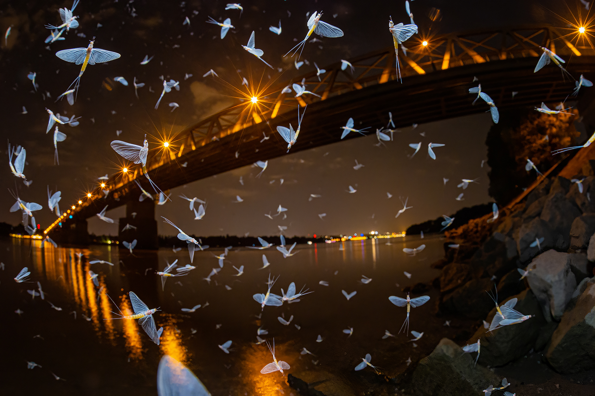 „Ennek hatására a szárazföldi fényforrásokhoz repülnek a petézés előtt álló nőstények és itt rakják le a petéiket. A petékből csak a folyóvízben kelnek ki a lárvák, így sérül az utódgeneráció. Különösen a kivilágított hidak veszélyesek, mert a folyásiránnyal szemben repülő kérésznőstény tömegek feltorlódnak előttük, majd a hídlámpákhoz felrepülve elpusztulnak a hídon” – magyarázta a kutató.