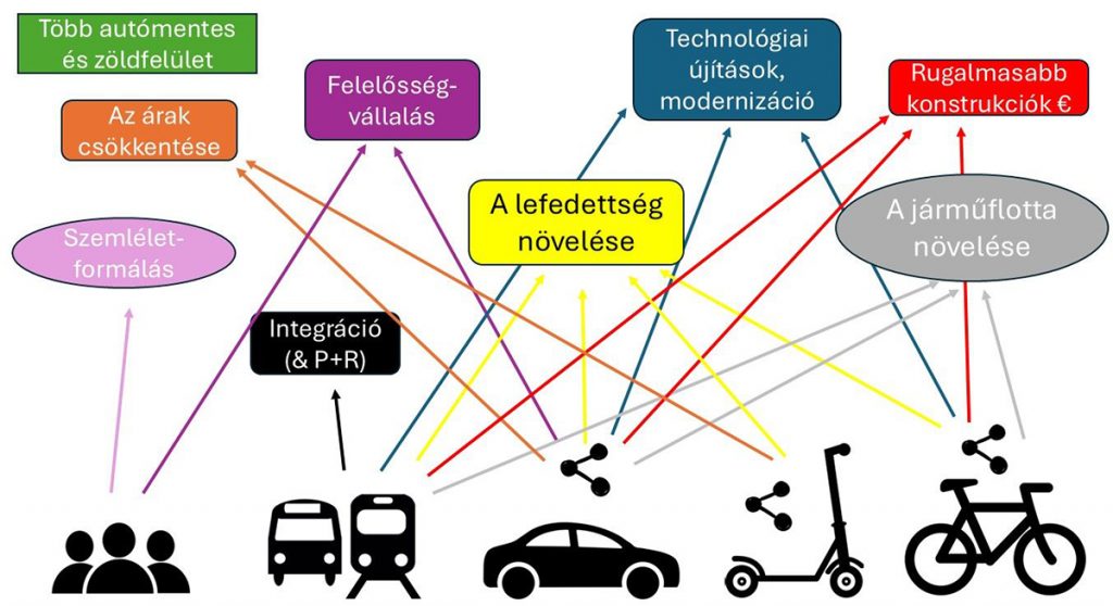 A negatív hatások mérséklésére, de az egyéni autóhasználattal járó előnyöket is megtartva számos megosztott mobilitási szolgáltatás jelent meg. A járműtulajdonlás helyett, a járműveket szolgáltatás keretében lehet használni, vagy magát a járművet (kerékpármegosztás – Bubi, autómegosztás), vagy a jármű férőhelyeit megosztva (telekocsi). Ugyanakkor, ezen szolgáltatások használati aránya alacsony.