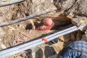 A budai aluljáróban a betonozási, vasszerelési és szigetelési munkák után már a burkolat alatti elektromos védőcsövek lefektetésénél tartanak a szakemberek.